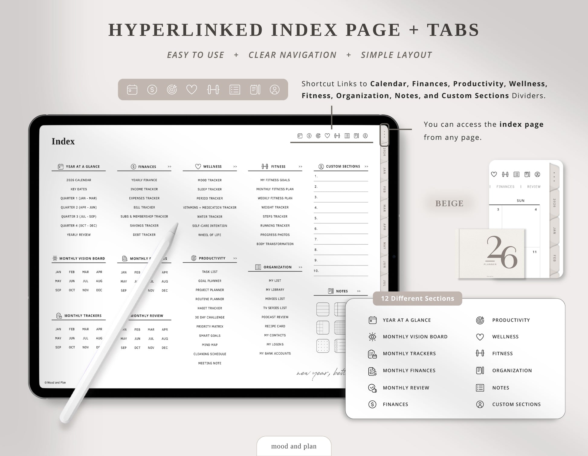 ✔︎ Fully hyperlinked 2026 Dated Digital Planner(1100+pages).